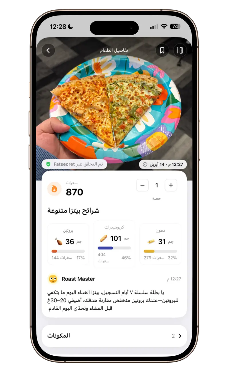 س: كيف يمكنني تتبع السعرات الحرارية بدقة للوجبات المعقدة أو وجبات المطاعم؟+