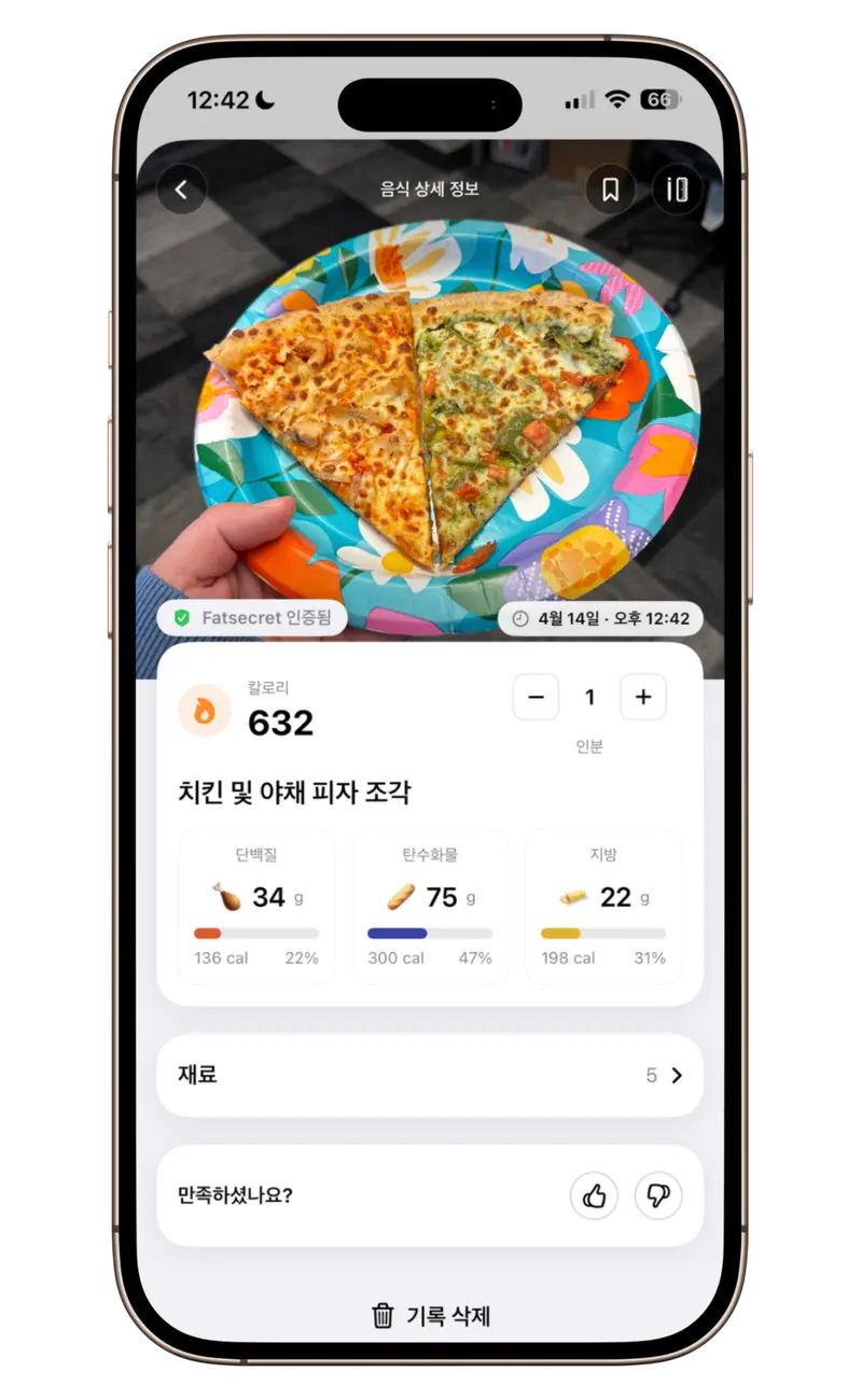 GAYA의 사진 기록 기능을 사용할 때는 접시 바로 위에서 사진을 찍으세요. 이러한 수직 뷰를 통해 AI가 랩이나 샐러드의 모든 구성 요소를 명확하게 파악할 수 있어 더욱 정확한 칼로리 및 영양소 추정이 가능해집니다.